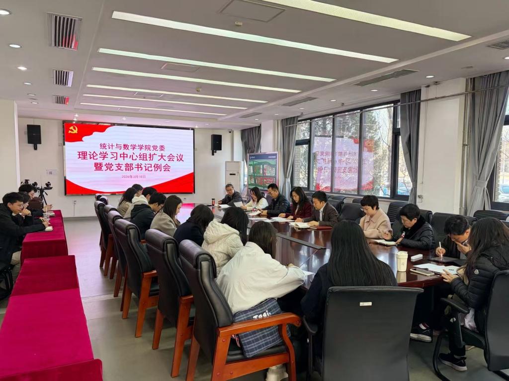 3月18日,统计与数学学院党委在沙河校区学院1号楼105会议室,召开理论学习中心组(扩大)学习会暨党支部书记例会。会议由学院党委书记许晓娟主持,学院党委委员、组织员、师生党支部书记参加会议。