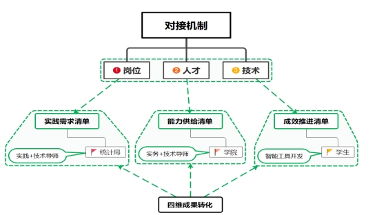 学院立足统计学科特色,紧扣教育强国与国家治理现代化战略,创新构建“1+N”校地共建育人模式,以学院为核心“1”,联动大兴、昌平、丰台三地统计局形成“N”个实践集群,搭建校地协同育人平台。针对高校统计人才培养“理论与实践脱节”的普遍难题,以及地方统计部门在“数字化转型”与“专业人才补给”方面的迫切需求,共同体通过“党建引领+清单对接+三导师制+四维转化”机制规范运行,构建“认知实习-项目实训-顶岗实践”阶梯式实践体系,依托统计云系统强化科技赋能,实现“理论-技术-实务”闭环育人,推动校地资源互补、优势互促。